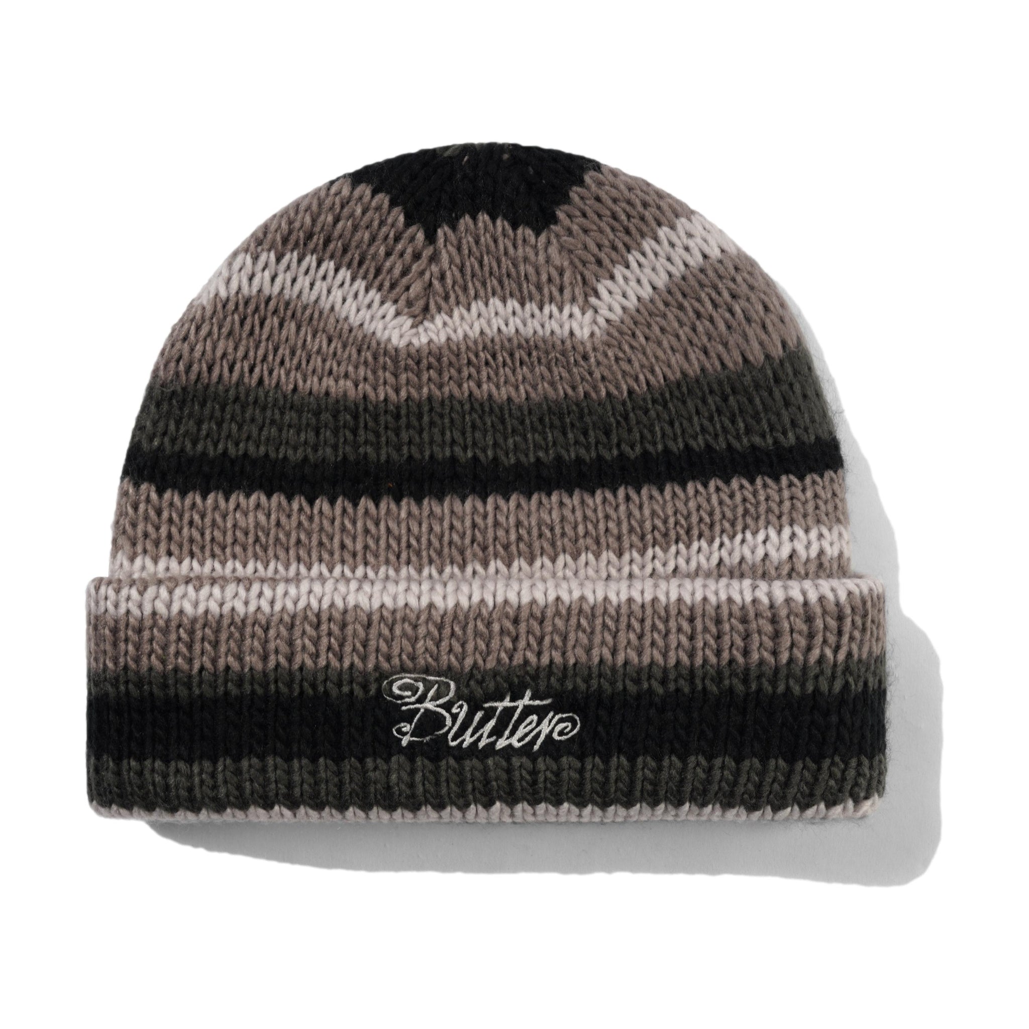 Butter Ombre Stripe Knit Beanie Black