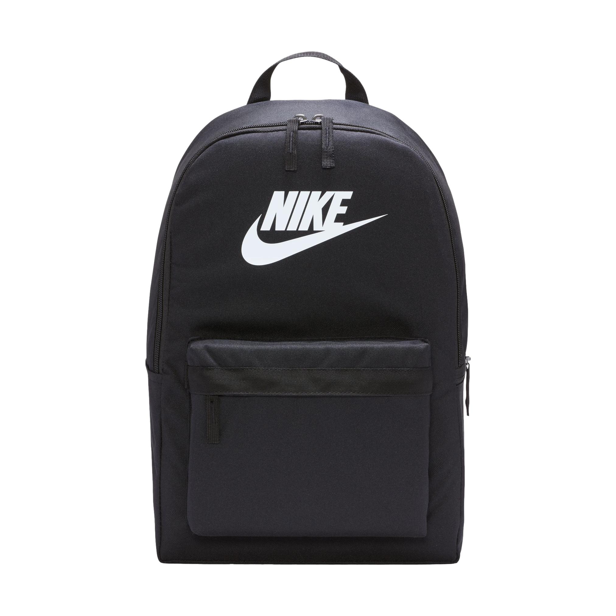 Take your gear to go with the Nike Heritage Backpack. Its spacious main compartment features a sleeve that holds up to a 15" laptop, so your computer is never out of reach. 2 zippered accessories pockets help keep your gear organized and easy to grab. This product is made with at least 65% recycled polyester fibers.